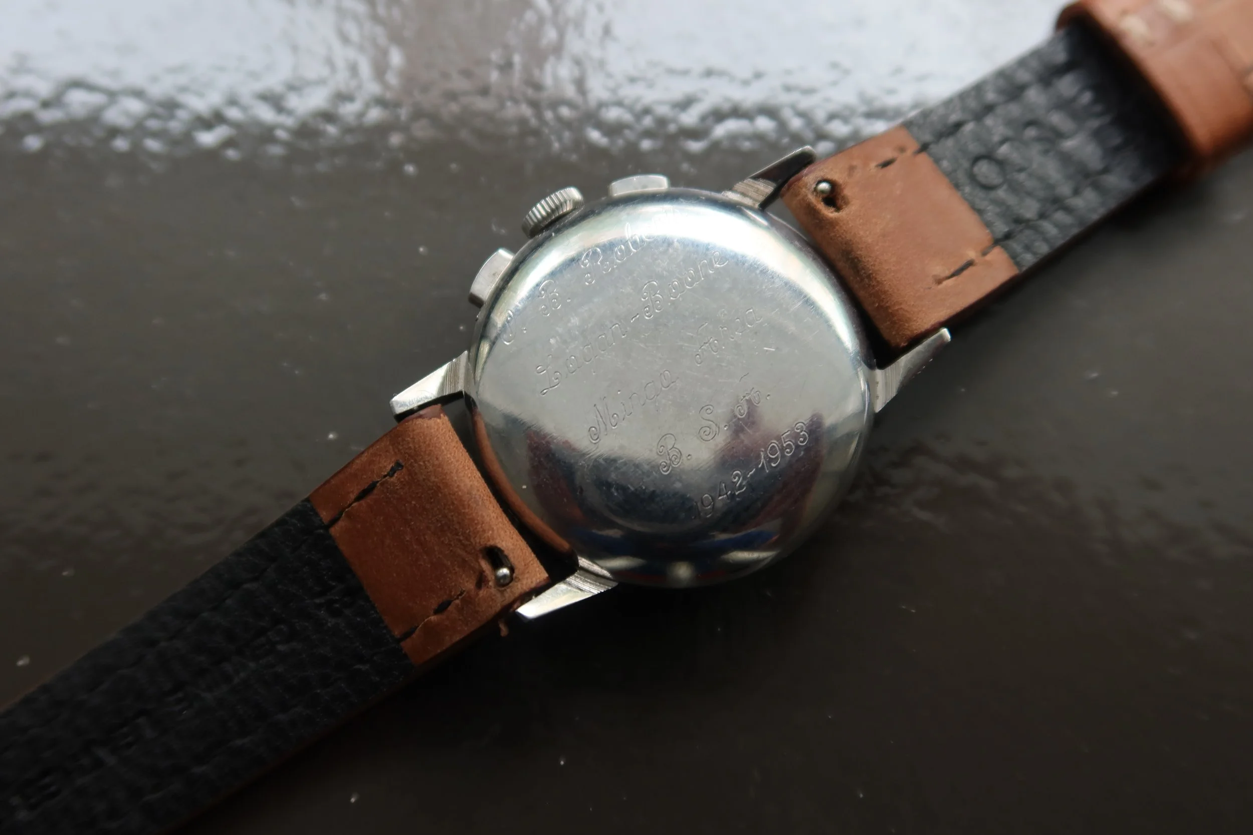 One of these chronograph references that came before the infamous Speedmaster models was the reference 2279. This reference was launched in 1943 and was produced through to 1957. What must be remembered is chronograph watches were produced in fairly low quantities during this era compared to other models most brands carried, making the reference interesting from a rarity perspective. It appears through research that there were 4 iterations of the reference produced, which are shown by the numbers after the reference number. For example, the 2279 today is the reference 2279-4, meaning the last iteration of the reference.